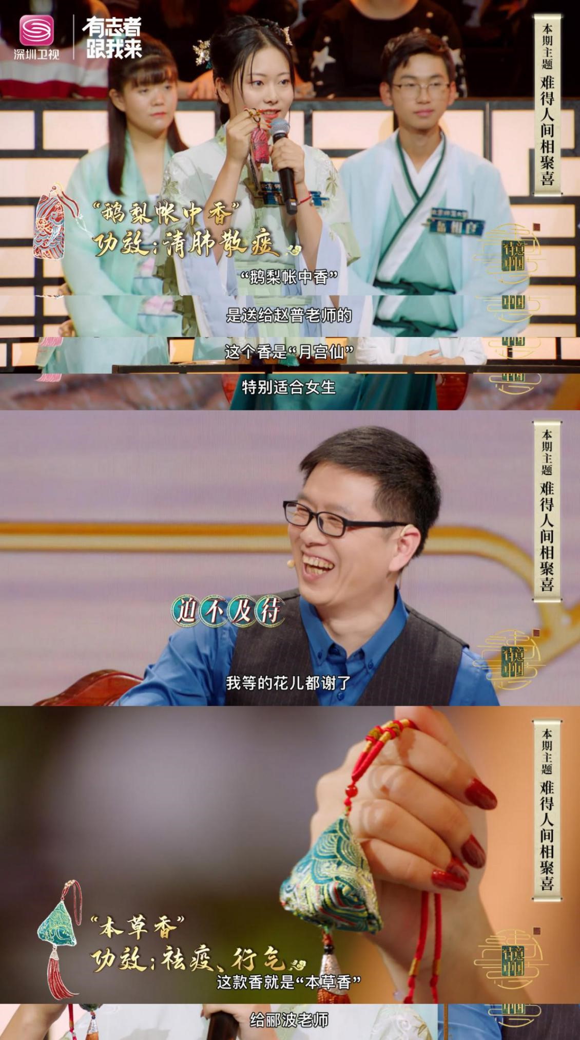 回想往期节目,高校学子的才艺表现一直可圈可点,有现场清唱诗词的,也有携手嘉宾演绎诗意名篇进行现场音乐伴奏的;再到本期节目的香囊制作,可以看到高校学子对其背后的传统文化的热爱与自发的践行。这种传统文化在年轻一代群体中的普及传播,何尝不是文化层面上的一种“相聚喜”呢。