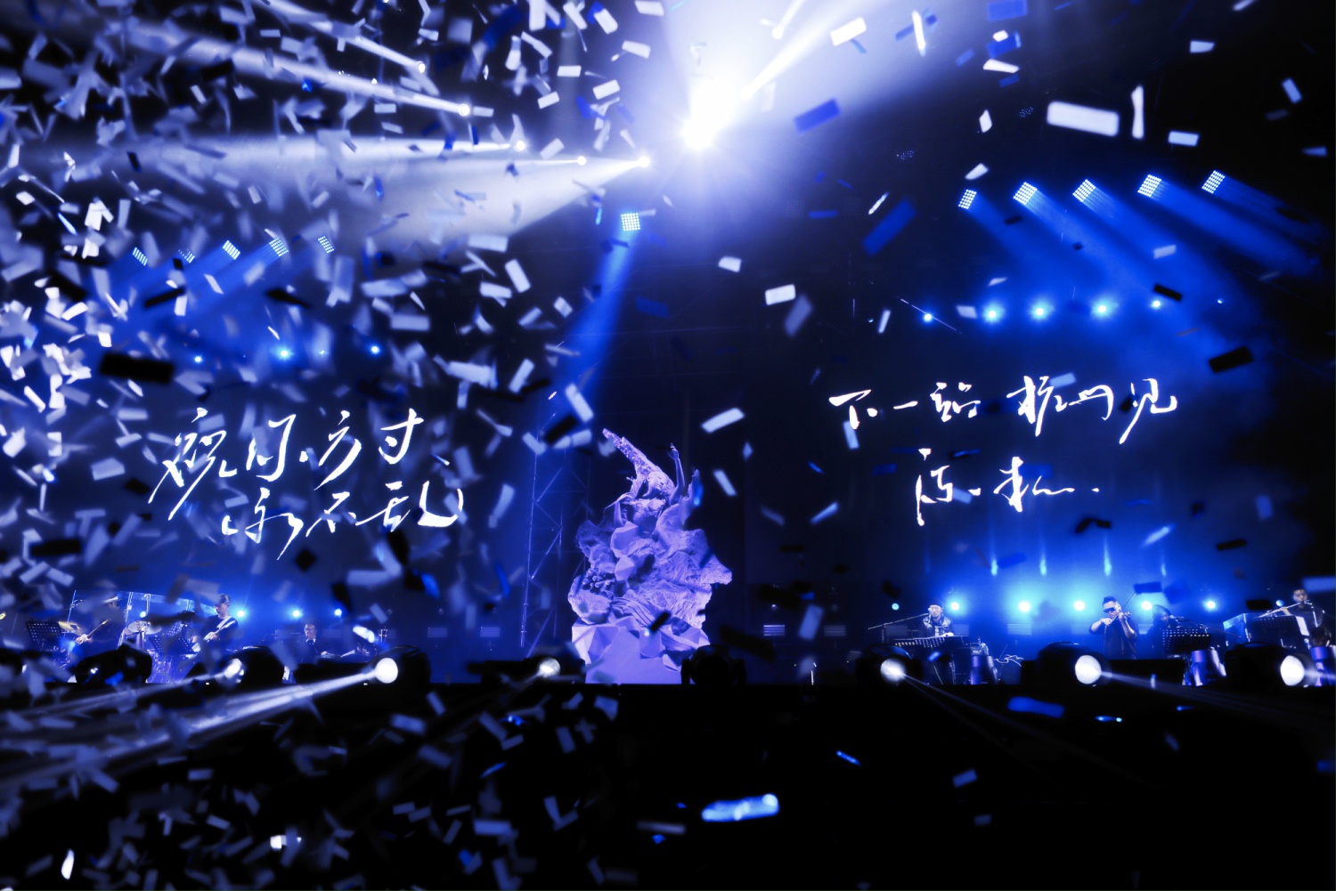 一个巨大的塑像出现在舞台中间偏后的位置,在陈粒演唱会拉开幕布时,率先接受着灯光的变幻和观众的欢呼。