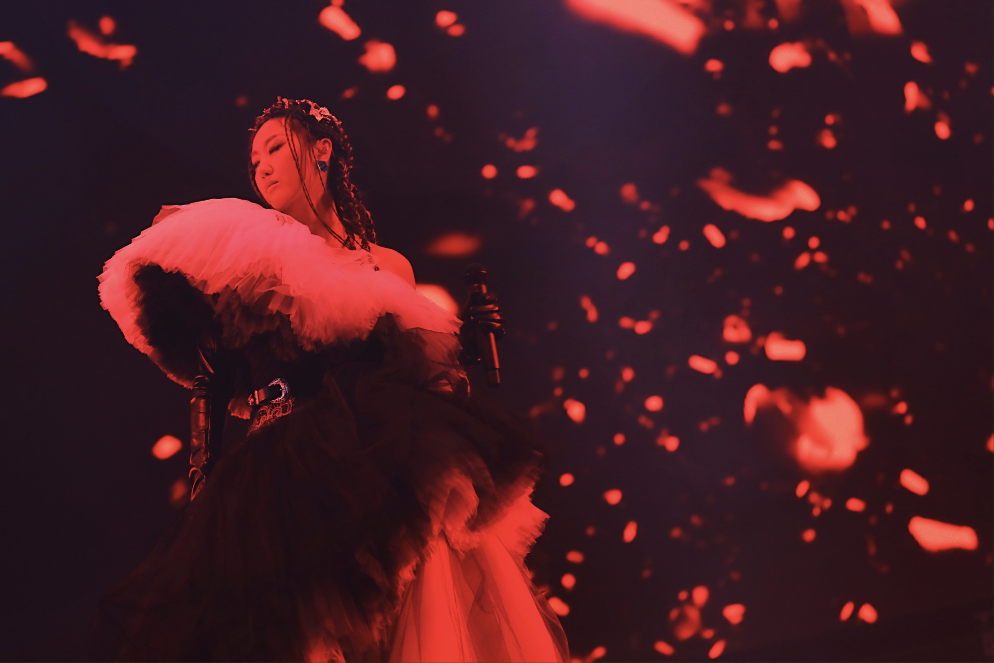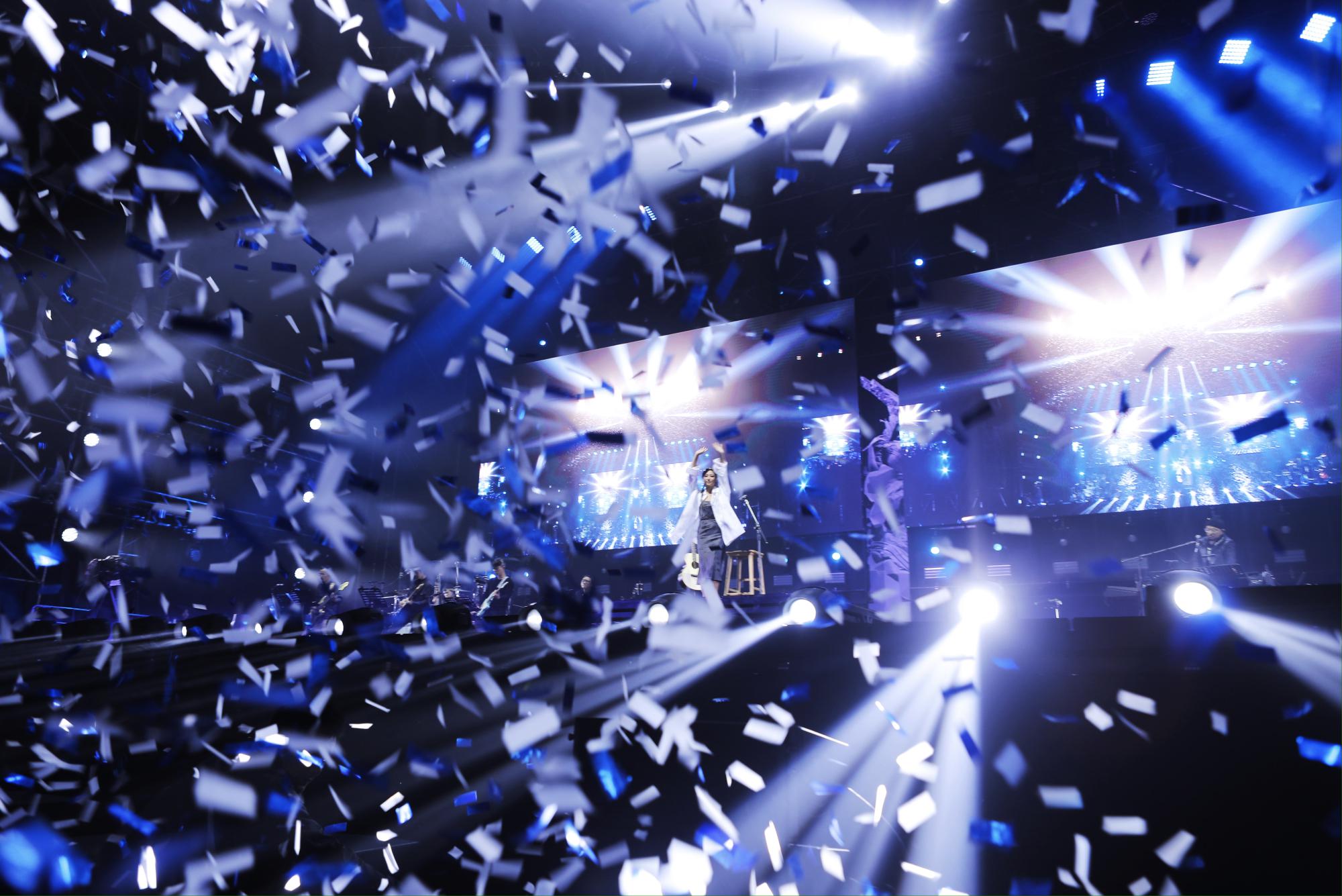 现场的音乐编排随着她唱腔的改变而变。《第七日》《泛灵》《走马》《望穿》《性空山》《山水人物》等作品,集中体现“山河自然风”,同时用编曲、服装等点缀现代元素。比如台上乐手的编排除了演唱会常规的吉他、贝斯、键盘、提琴,还有二胡、唢呐等民族管弦乐的加入,以打造与录音室版本不一样的现场创新。