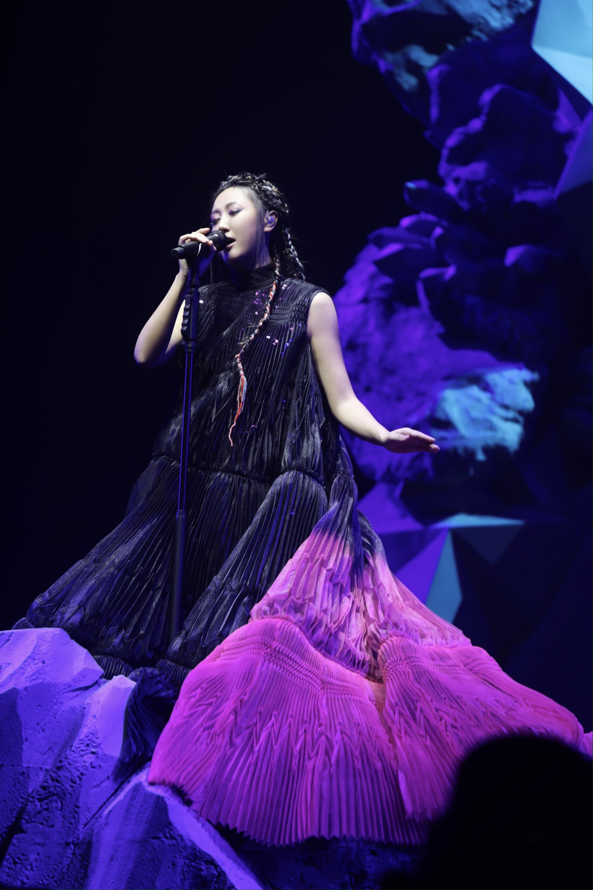 而陈粒无疑是这种音乐生命的源起,在现场,她的声音张驰自然,娴熟游走于摇滚、舞曲、民谣、古风等的各种的唱腔中,时而恬淡时而奔腾,层次多远且唱功稳定,成为演唱会中引领一切的绝对主体。