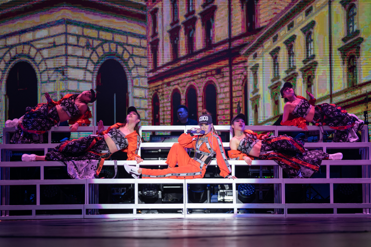 演出以《Ready Or Not》开场,CoCo李玟的声音一响起,即在场馆内引起阵阵欢呼与尖叫声,观众随节奏摇摆,热烈气氛被瞬间点燃。随着舞台装置缓缓打开,盛装的CoCo李玟出现在观众眼前,现场沸腾至极。接下来,《叩叩》、《爱琴海》轮番登场,观众很快进入嗨唱状态,感染力十足。