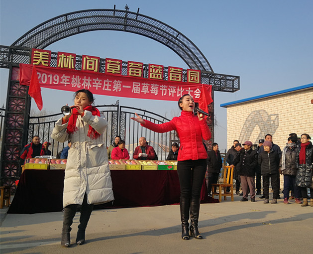 市集上,最抢眼的当属“2019桃林辛庄第一届草莓节评比大会”,著名钢琴家濑田裕子和从央视星光大道走出来的“婷婷玉立”组合的小姐儿俩和兴寿镇领导、果蔬专家们一边品尝草莓一边当评委,把自己最爱吃的那一票投给了辛苦耕耘的果农。