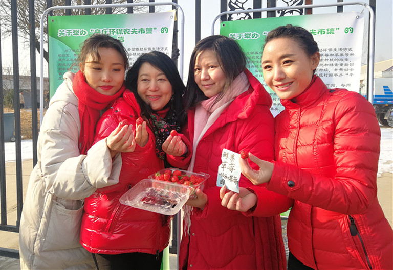 红彤彤的草莓,火辣辣的歌声,日前北京市昌平区兴寿镇辛庄环保农夫市集火爆举行。尽管是寒冬腊月,天寒地冻也没能阻止人们相聚在这里热情,而收获颇丰的果农们脸上都洋溢着丰收的喜悦。