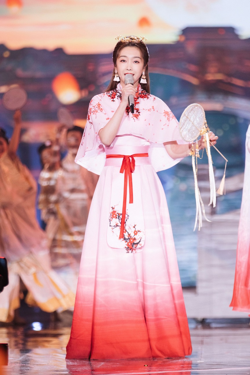 当晚,宣璐以一袭粉色国风刺绣披肩裙出镜,开场团扇掩面惊艳不已,婉转悠扬的唱腔搭配意境唯美的国风舞台,尽显古韵古香。作为90后业务能力在线的演员,宣璐以走心的演技塑造了不少丰满的角色。除此之外,各项技能满点,不仅是令人倍感惊艳的舞蹈up主,此次与郑棋元同台献唱《知否知否》,声动人心,更是令不少观众发出“原来宣璐唱歌也这么好听”的感慨。