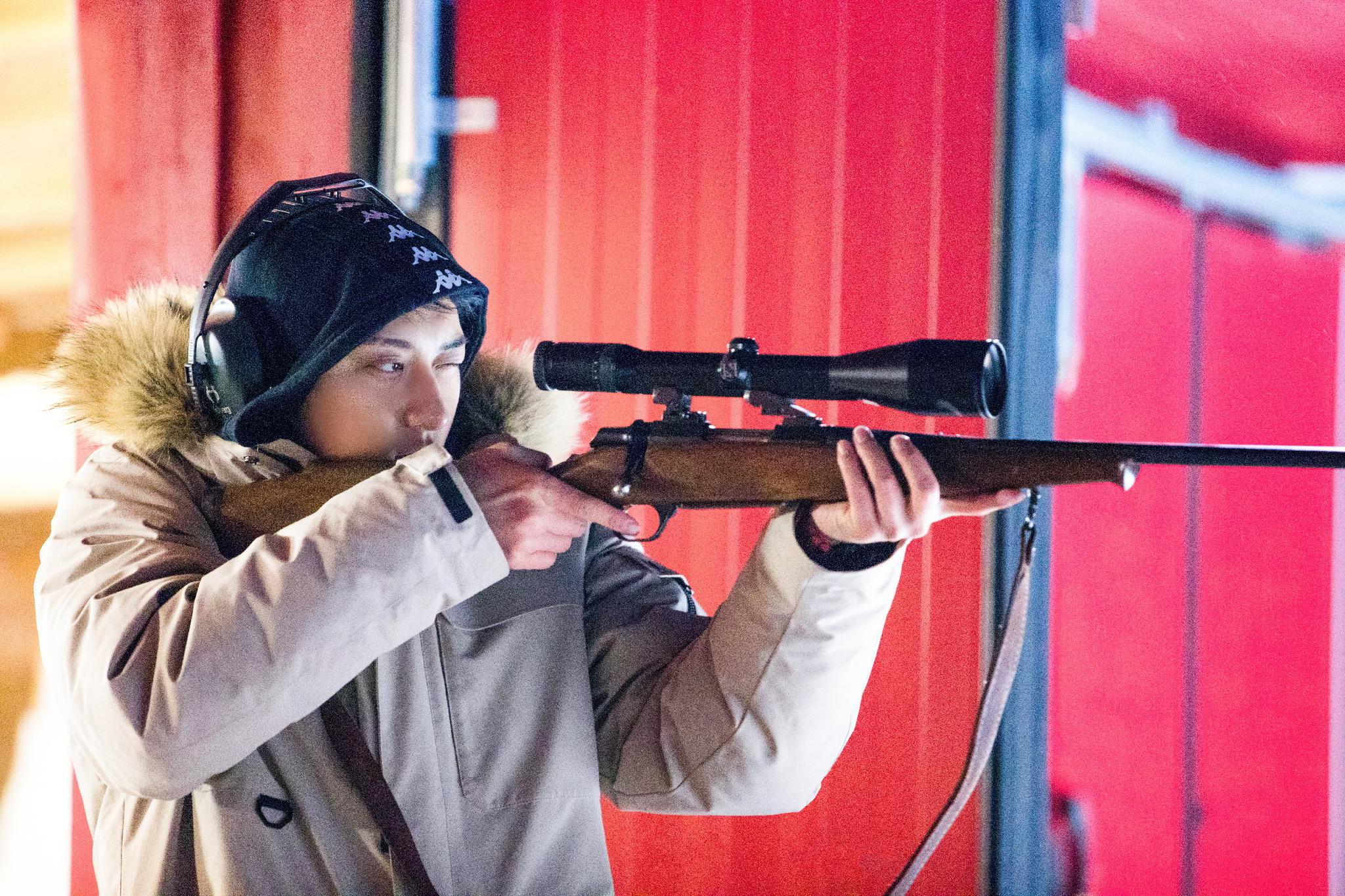 朗伊尔城是北极熊的故乡,一个熊的数量比人还多的地方,人类只是城市的拜访者。而为了保障人身安全,不伤害北极熊的前提下,携带枪支便成了一种出行日常,用来震慑住出没的北极熊。兄弟团北极第一站便是去往靶场学习射击。黄子韬初来北极似是未适应这寒冷天气,状态不佳。所幸,不久之后燃烧自己的他找回最佳状态,直言“枪神”来了。看看他标准专业的姿势,在场所有人都充满期待。然而在最后检查靶环时,周冬雨口中的“杀手”,尹正眼中的“奥运会运动员”却一环未上,惨遭射击生涯的滑铁卢。黄子韬还笑着自嘲道“没有人比我更牛了,全白板”。